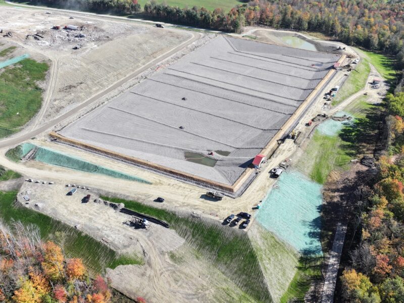 The project involves the excavation and preparation of the subgrade for Cells 7 and 8, followed by the construction of approximately 9.7 acres of a double composite liner system. Key components include the installation of HDPE primary, secondary, groundwater, and conveyance piping with associated accessories, as well as the construction of two sideriser buildings equipped with pumps, meters, and appurtenances. A concrete submersible pump station will be installed, complete with inlet and outlet valve pits, pumps, piping, controls, and related components. The scope also includes expanding the landfill gas (LFG) collection system through drilled vertical wells, horizontal gas collectors, conveyance piping, tie-ins, and condensate traps. Additional work comprises building a perimeter road, installing a temporary sedimentation basin with erosion and sediment controls, and constructing a new scale house along with a second mechanical outbound truck scale.