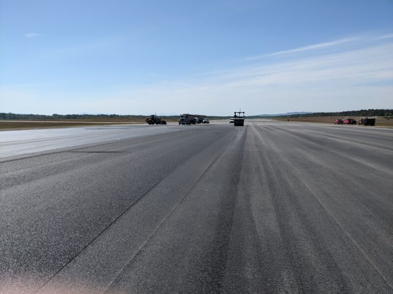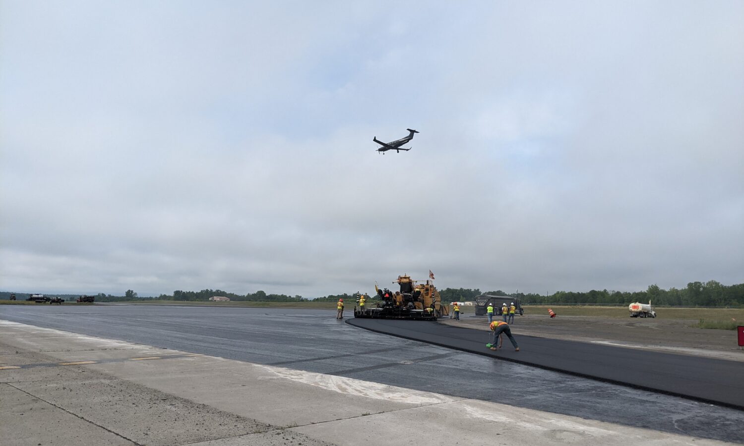Rifenburg Construction completed an update to Plattsburgh International Airport Runway 17-35. Following a previous project on the north end of the runway, two thirds of the runway remained concrete and required additional rehabilitation. The project involved rubberizing and rolling 1.53 miles of runway over 230,000 square yards, prior to paving. Additional work included full-depth reconstruction over utilities and at tie-ins, as well as extensive subgrade preparation and modifications to airfield lighting. The runway was paved using a wide paving package to achieve a 25-foot lane width, with production exceeding 3,000 tons per day. Post-construction activities were also completed to ensure full operational readiness.