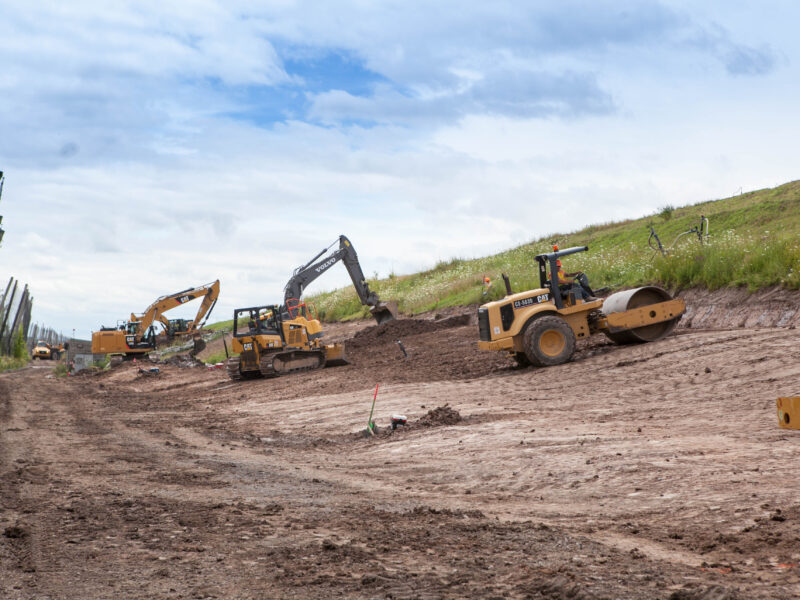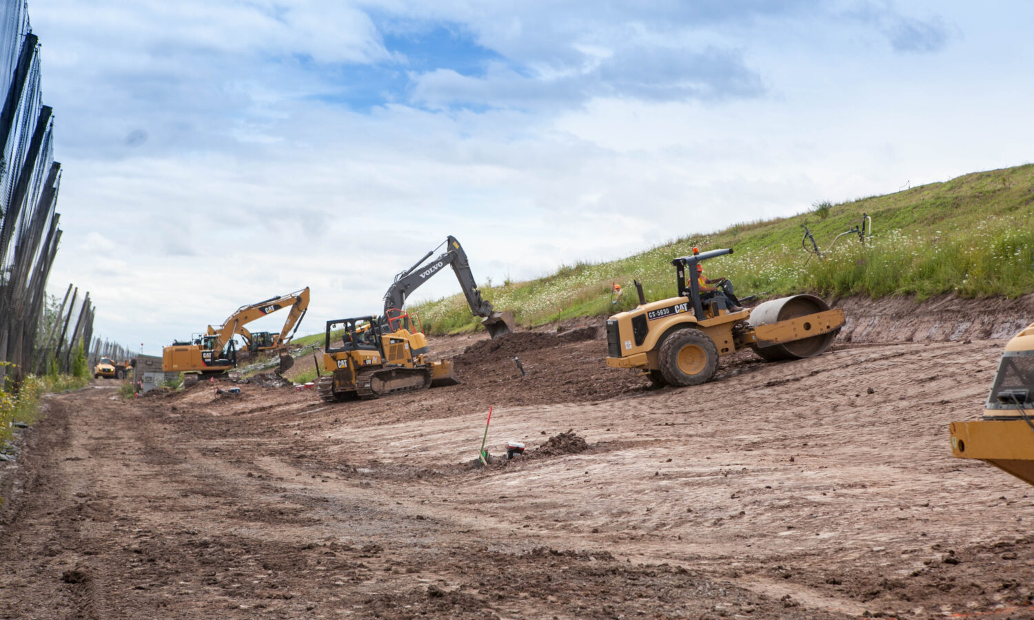 To keep any water from entering the landfill, approximately 215,000 cubic yards of clay and 45,000 cubic yards of topsoil were placed over a sensitive geosynthetics. While protecting the liner system during the excavation and installation of the underdrains, more than 17,000 feet of underdrain piping was installed in the soil layer. With hundreds of loads of trash being hauled into the landfill daily, it was a real challenge to complete our work and maintain uninterrupted flow thru the landfill. With the use of flaggers and an experienced staff, the owner was able to operate without any interruptions. Proper safety training, coordination and precise scheduling ensured protection of the workers and maintained uninterrupted traffic flow for the hundreds of waste trucks, landfill traffic and construction related vehicles.