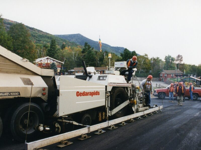 Working closely with NYSDOT and ORDA, Rifenburg managed all major construction without interrupting full access to the summit during peak seasons. Working within strict environmental guidelines, we preserved unique and endangered tree species. Check dams were installed to prevent erosion of ditch lines, and topsoil and ditch line seeding further reduced erosion impact. Tuck pointing and stone repair/replacement of walls using historic quarry stone were completed, as well as the installation of septic tanks near “the castle” at the summit. Roadway construction was paved to the binder course each Friday to allow for public access every weekend. To expedite construction, Rifenburg excavated the asphalt and macadam and hauled it to a temporary waste area on the mountain. We limited the exposure of milled surfaces by closely sequencing binder paving operations, reducing the impact of truck traffic and construction activity to the surfaces.