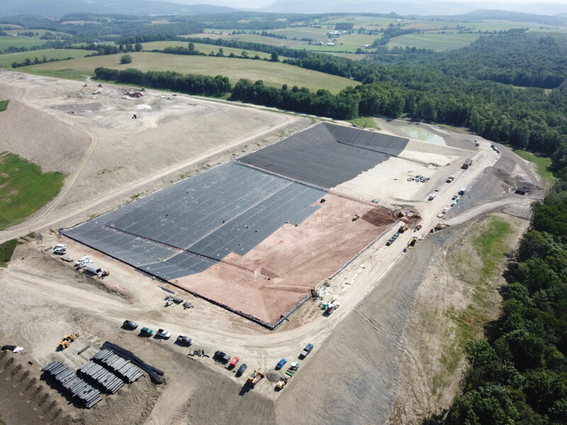 The project covers subgrade prep for Cells 7 and 8, liner installation, landfill gas system expansion, and key site upgrades including a pump station, road, sediment basin, and scales.